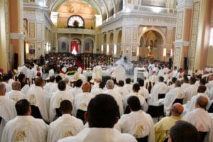 Já o Padre José de Anchieta Moura Lima mencionou desafios atuais, como o diálogo e o caminho sinodal, e agradeceu a condução anterior. “São preocupações fortes para quem está chegando e a gente tem muita esperança que ele possa dar continuidade a todo o projeto pastoral dos outros Arcebispos, de modo especial de Dom Gil, a quem agradeço por esses 17 anos de caminhada pastoral. A presença de Dom Marco Aurélio vai somar conosco, ajudar a crescer mais esse espírito de comunhão, de participação, de unidade pastoral no nosso clero e no meio do povo de Deus.”