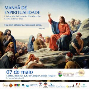 No próximo sábado, 7 de maio, o Colégio Católico Resgate sedia a Manhã de Espiritualidade e Páscoa dos Educadores das Escolas Católicas da Arquidiocese de Juiz de Fora. O evento acontece das 8h às 12h e terá o mesmo lema da Campanha da Fraternidade (CF) deste ano: “Fala com sabedoria, ensina com amor” (Cf Pr 31,26).