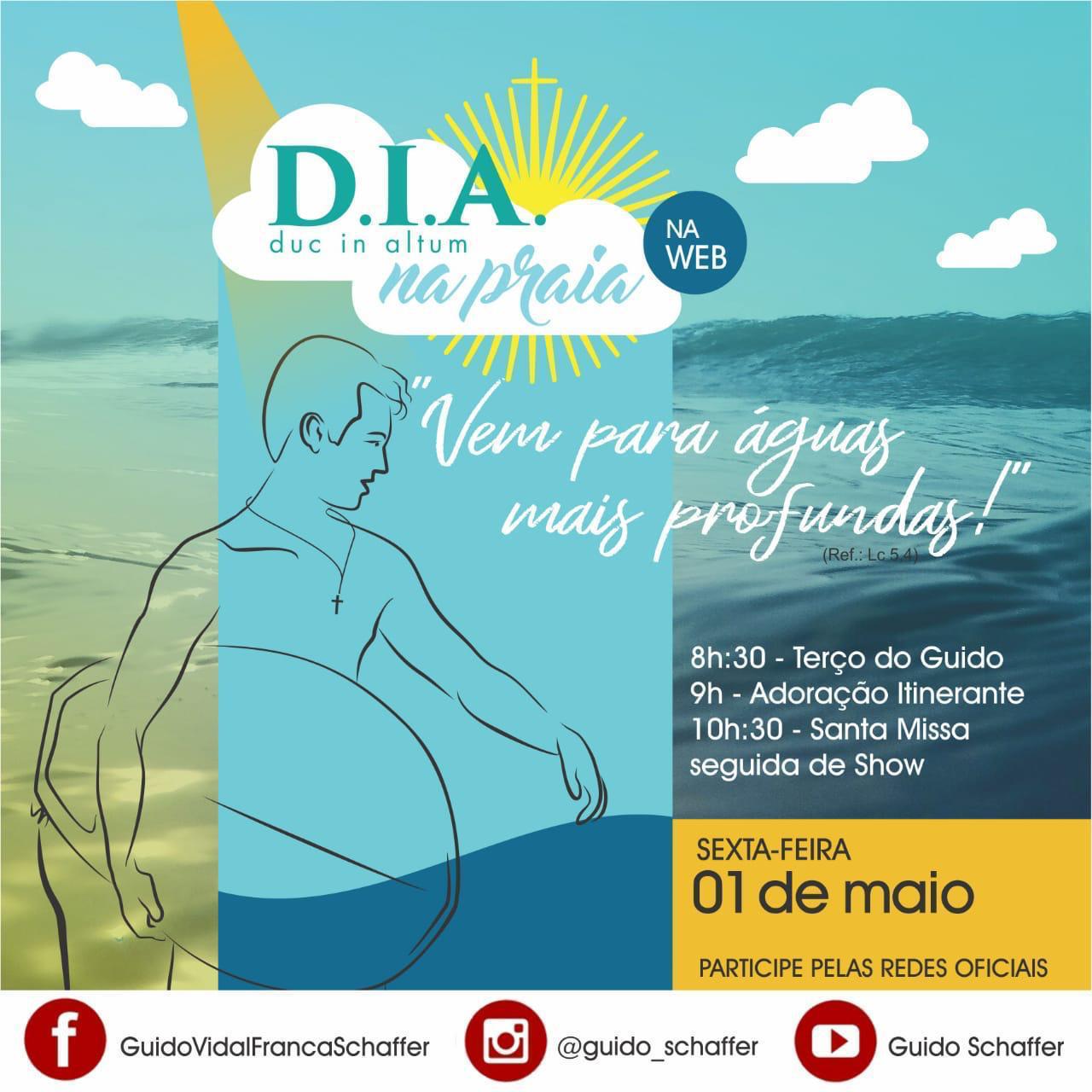 A sigla D.I.A. é uma abreviação de “Duc In Altum”, expressão que significa buscando águas profundas. O evento acontece tradicionalmente na praia e no aniversário de páscoa de Guido. Desta vez, por conta da pandemia do Covid-19, a programação, que inclui oração, louvor, adoração e animação, será on-line.