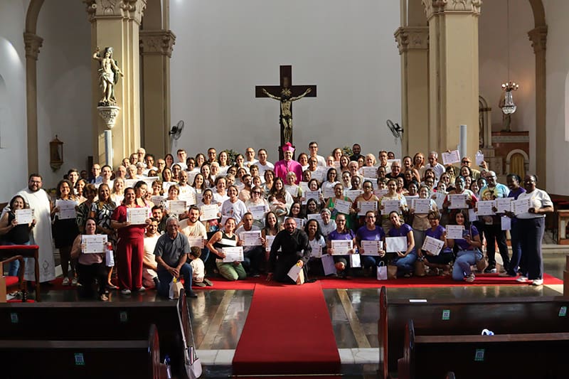No período da tarde, os fiéis se reuniram na Catedral de São Sebastião, onde foi realizada uma paraliturgia, reunindo peregrinos que, ao longo do Ano Santo, percorreram as 10 Igrejas Jubilares da Diocese de Leopoldina. O encontro foi marcado por adoração ao Santíssimo Sacramento e pela entrega oficial dos Certificados dos Peregrinos, reconhecendo o caminho espiritual percorrido por homens e mulheres que atenderam ao chamado de serem peregrinos de esperança.