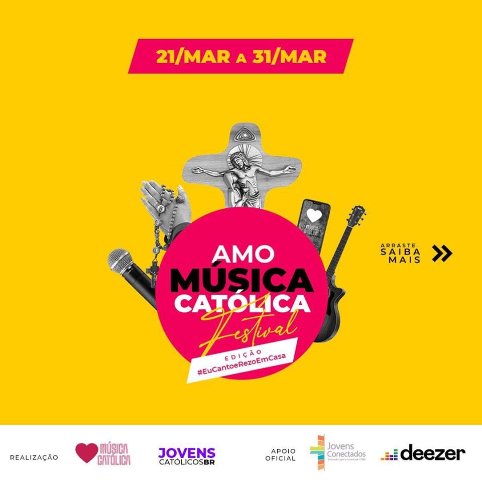 A partir deste sábado (20) acontece o Festival Amo Música Católica, a edição deste ano é “Eu Canto e Rezo em Casa”, uma das muitas iniciativas que surgem nesse período de suspensão do convívio social devido a pandemia do coronavírus.