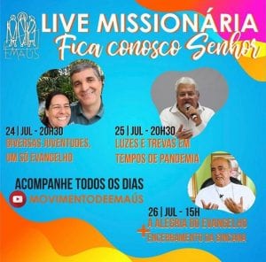 A live missionária será aberta nesta sexta-feira (24), às 20h30, com a palestra sobre “Diversas Juventudes, um só Evangelho”.