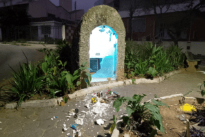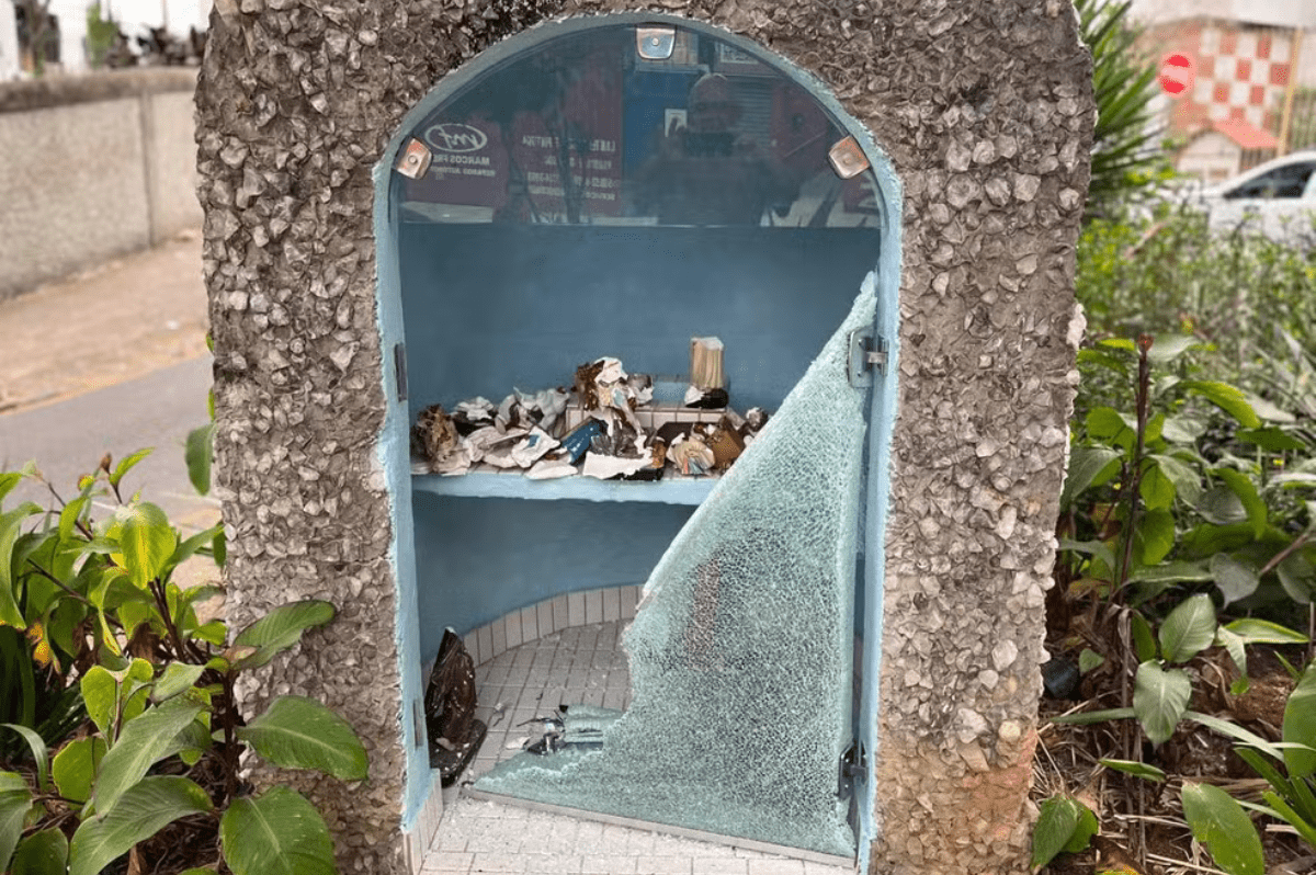 No último final de semana, a gruta dedicada a Nossa Senhora Rosa Mística, localizada na Praça Adélia Saggioro, no Bairro São Mateus, em Juiz de Fora, foi completamente depredada. Durante o ato de vandalismo, ocorrido na madrugada de sábado (29) para domingo (30), foram quebradas a porta de vidro da gruta e as imagens que ela abrigava.