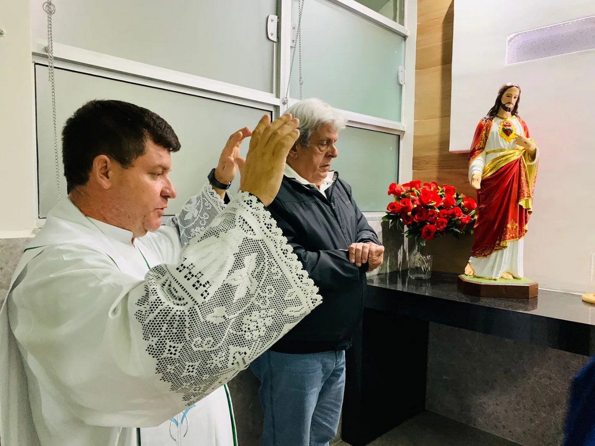 Na sala de oração, projetada pela arquiteta Laisy Rocha – Pinheiro Rocha Arquitetura, está uma imagem do Sagrado Coração de Jesus que marcava presença na recepção do hospital. Antes de ser colocada no espaço, a imagem recebeu cuidados especiais de restauração por Monique Santana Lima.