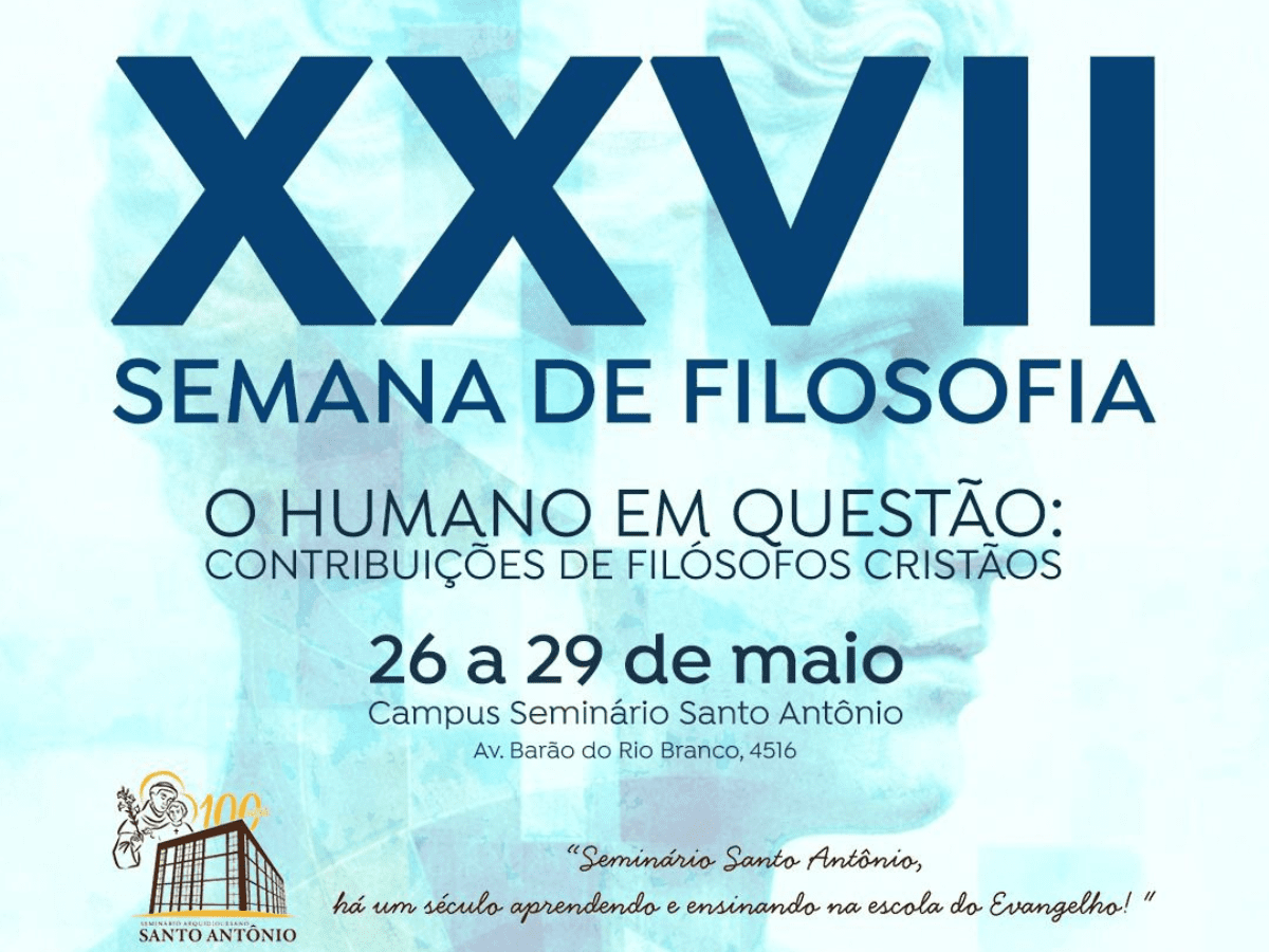 Entre os dias 26 e 29 de maio, o Seminário Arquidiocesano Santo Antônio, em Juiz de Fora, promove a 27ª edição de sua tradicional Semana de Filosofia. Realizado no período da manhã, o evento reunirá estudantes, professores e a comunidade em geral para um tempo de reflexão, estudo e diálogo em torno das grandes questões que atravessam a existência humana.