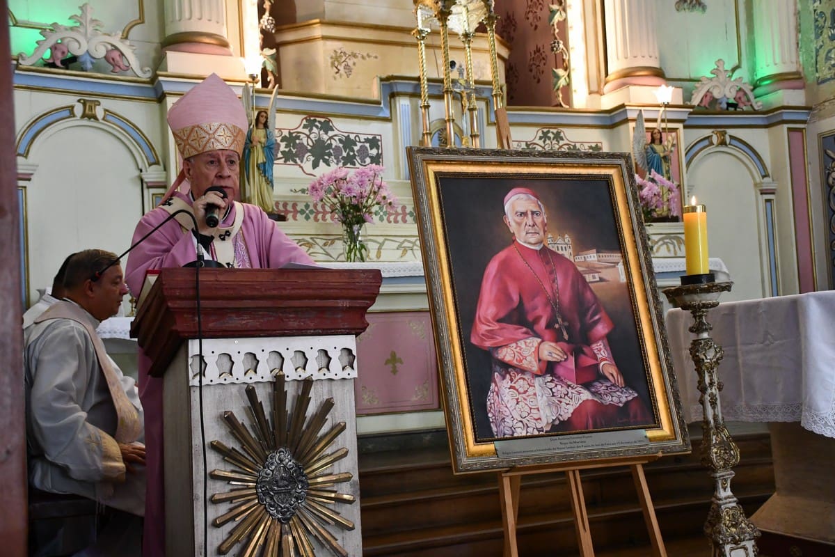 Ao final da celebração, o Pastor Arquidiocesano leu uma mensagem sobre a importância do momento, bem como o homenageado. “Dom Antônio Ferreira Viçoso, foi o sétimo Bispo da então Diocese de Mariana, hoje Arquidiocese, à qual pertencíamos na ocasião. É um dos Bispos mais importantes da história do Brasil, empreendendo a reforma do clero, defendendo os direitos da Igreja frente a interesses políticos da época, defensor dos negros contra a escravatura, lutador em favor os pobres, doentes, crianças desvalidas e idosos desamparados. […]. Hoje, contudo, nos interessa especialmente, a feliz iniciativa de Dom Viçoso, de criar a Irmandade de Nosso Senhor dos Passos, após a generosa oferta do casal Católico, sem filhos, o Barão de Bertioga, José Antônio da Silva Pinto, e sua esposa, a Baronesa Maria José Miguelina de Barbosa”, explicou ele