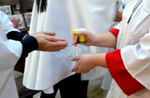Já os que participaram fisicamente da Celebração respeitaram as medidas de higiene e distanciamento social indicadas pelas autoridades sanitárias. Além disso, a paróquia mostrou já estar preparada para receber novamente os fiéis, com fitas e demarcações nos bancos e disponibilização de álcool gel, inclusive no momento da Comunhão.