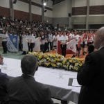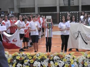 Na noite da última segunda-feira, 20 de maio, foi realizada a cerimônia de abertura dos Jogos das Escolas Católicas de Juiz de Fora, evento organizado pela Pastoral da Educação Católica com o apoio da Arquidiocese. A solenidade contou com a presença do arcebispo metropolitano, Dom Gil Antônio Moreira, do prefeito de Juiz de Fora, Antônio Almas, e diretores das escolas envolvidas na competição: Academia, Carmo, Jesuítas, Santa Catarina, Santos Anjos e Stella Matutina. Pais e alunos também prestigiaram a cerimônia, que aconteceu na quadra poliesportiva do Colégio Santa Catarina.