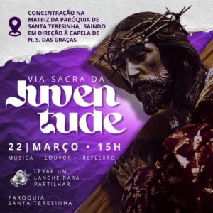 A Paróquia Santa Teresinha do Menino Jesus, no bairro homônimo, realizará a Via-Sacra da Juventude neste domingo, 22 de março, às 15h. A concentração acontecerá na Igreja Matriz, com caminhada em direção à Capela Nossa Senhora das Graças. A programação contará com louvor, reflexão e um lanche partilhado.