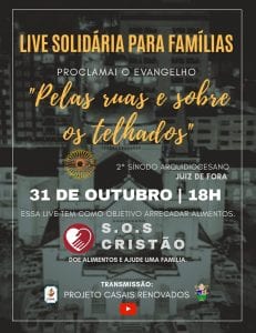O Projeto Casais Renovados promove, no dia 31 de outubro, uma “Live Solidária para Famílias”. O evento virtual está marcado para as 18h e terá a Catedral Metropolitana de Juiz de Fora como cenário, sendo transmitido pelo Facebook da Arquidiocese e pelas páginas do projeto no Facebook, Instagram e YouTube.