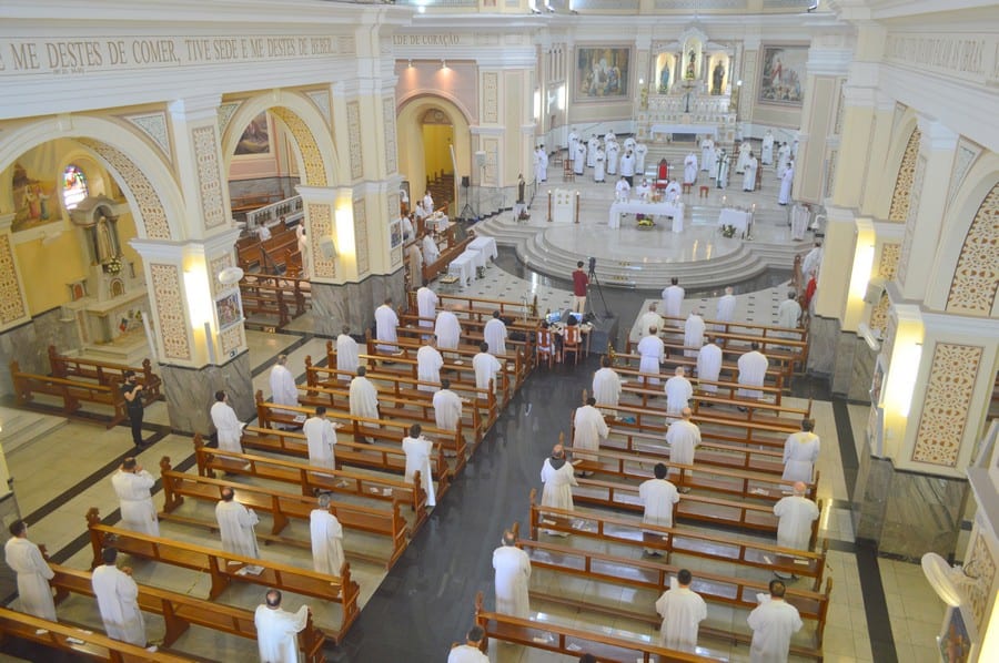 Durante a Santa Missa, os presbíteros renovaram as promessas sacerdotais. Por isso, em sua homilia, o Arcebispo Metropolitano falou aos padres. “Assim como Cristo é o ungido do Pai, pela misericórdia Divina, alguns entre os batizados são escolhidos para perpetuar a Sua missão sacerdotal e a Sua missão de pregador, de evangelizador, de anunciador da boa-nova. E somos nós. Não pelos nossos merecimentos. Não somos padres pelas nossas virtudes, mas pela graça de Deus. Não somos ungidos porque merecemos, mas para que nos purifiquemos e sirvamos ao povo de Deus. A nossa missão, queridos padres, é a missão de Cristo”.