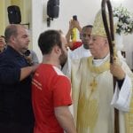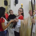 Além de festejar Nossa Senhora do Líbano, a Celebração Eucarística da noite de domingo marcou a Crisma de 11 jovens, sendo nove deles da própria paróquia e dois do Bairro São Benedito. Durante sua fala, Dom Gil também se dirigiu aos crismandos. “Hoje vocês estão sendo crismados, queridos jovens. O que vocês vão viver mais intensamente na vida de crismados? O amor: amar a Deus sem falhar; amar ao próximo sem desistir. Amar a Deus é muito bom, porque a gente sabe que Ele nos amar toda hora, não se esquece de nós, é um Pai bondoso. Amar ao próximo é mais difícil, porque às vezes você tem que amar aquele que não gosta de você, seu inimigo, seu perseguidor. Mas você tem que amar, porque Jesus mandou amar a todos. O amor de Cristo é um amor exigente”, afirmou.