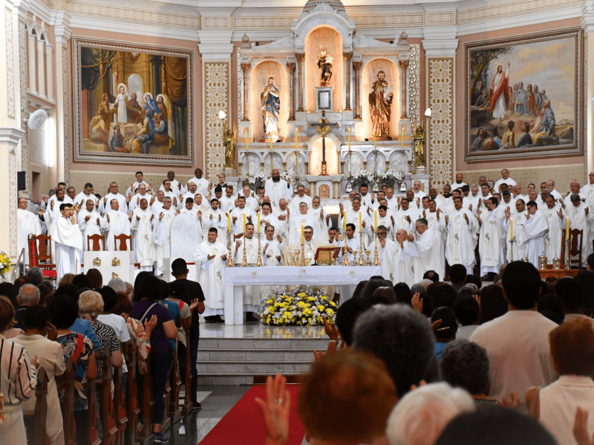 Pe. João Paulo também situou a celebração no contexto mais amplo da Semana Santa, lembrando que, na liturgia da noite da Quinta-feira, a Igreja recorda a instituição da Eucaristia e o gesto do lava-pés. “Ele nos pede a fazer o mesmo gesto, de lavar os pés uns dos outros, ou seja, de nos colocarmos a serviço”, afirmou, ressaltando que a vocação sacerdotal está intrinsecamente ligada à doação e à entrega. Em um mundo marcado por violência, guerras e divisões, o sacerdote destacou a necessidade de manter o olhar fixo na luz da ressurreição, capaz de iluminar e fortalecer a fé.