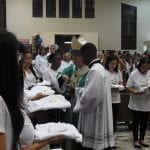 A missa de domingo marcou também a investidura de 25 novos ministros da Eucaristia e renovação do compromisso dos antigos ministros. Eram eles de todas idades e estiveram bastante alegres durante toda a celebração.
