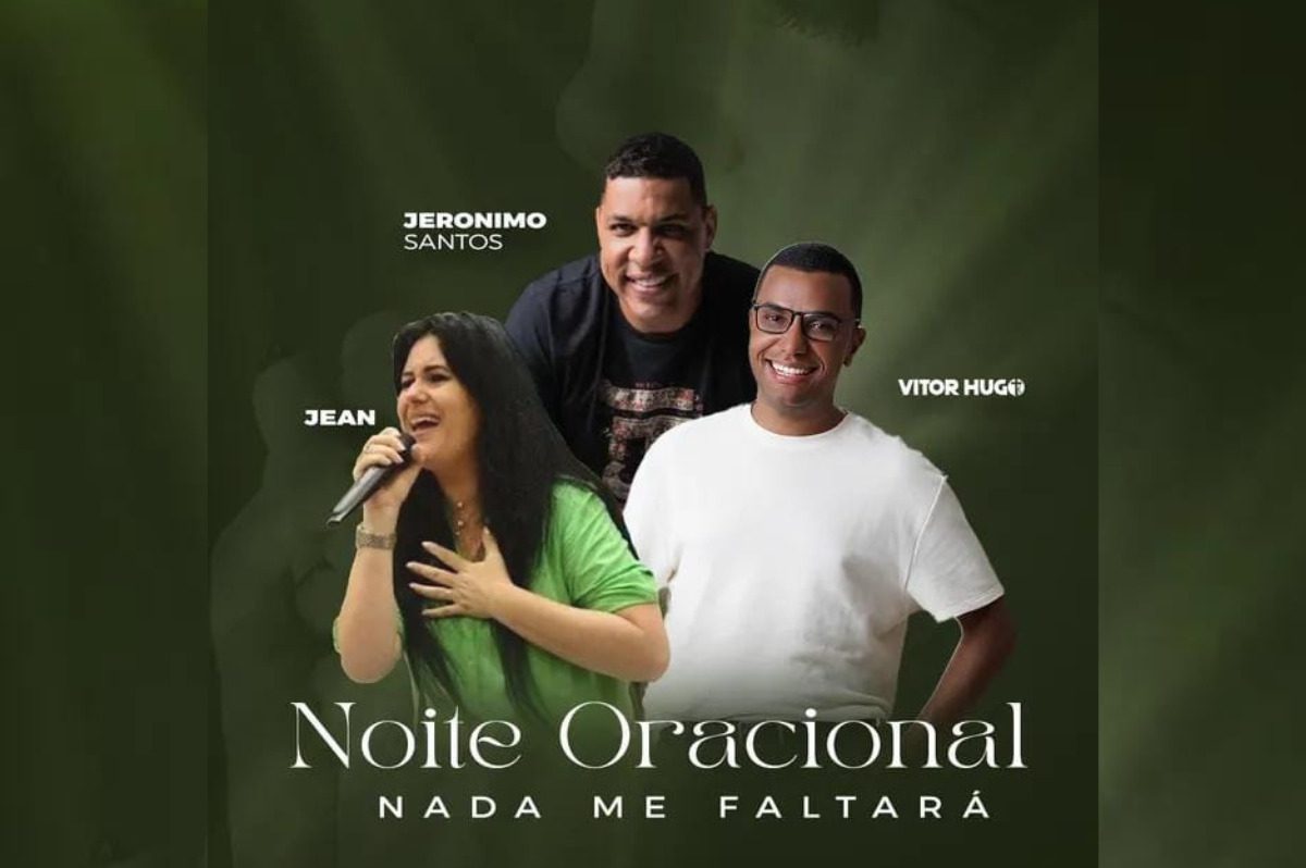 No próximo sábado (6), a partir das 20h, será realizada a Noite Oracional “Nada me faltará” na Paróquia Bom Pastor em Juiz de Fora, com a participação da cantora Jean e dos cantores Jerônimo Santos e Vítor Hugo.
