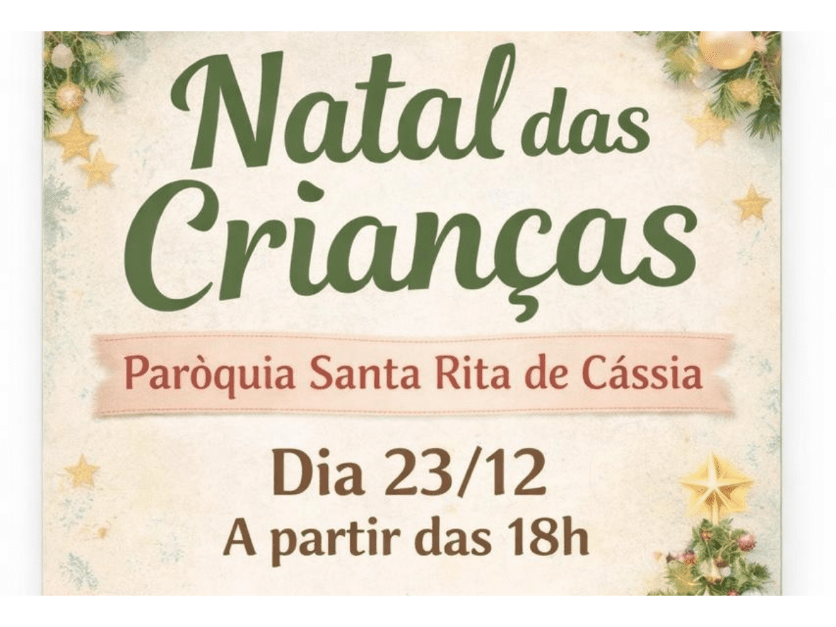 A Paróquia Santa Rita de Cássia, no bairro Bonfim, realiza no próximo dia 23 de dezembro o Natal das Crianças, um momento especial de fé, confraternização e alegria para toda a comunidade.