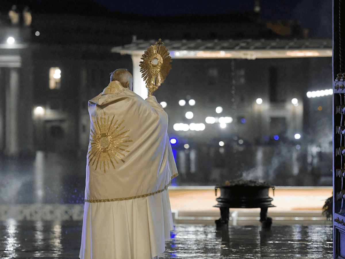 Ao contrário do que se costumava ver em todas as manhãs de audiência no Vaticano, a Praça de São Pedro estava deserta e foi ocupada pelo Crucifixo da Igreja de São Marcelo no Centro de Roma, visitada pelo Papa Francisco e que a seu pedido ali foi posto para este momento. Junto ao Crucifixo, a Imagem de Nossa Senhora retratada com seu Filho nos braços, ambas circundadas por folhas verdes banhadas por um sereno constante que se fazia notar através das luzes que clareavam todo o espaço. Foi assim que assistimos, há exatos cinco anos, o inesquecível momento de oração, no qual o Papa caminhou sozinho na chuva e se fez ouvir pelo mundo inteiro, clamando a Deus pelo fim da pandemia que assolava o mundo, causando mortes e um cenário de angústia e sofrimento.