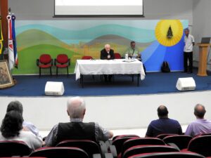 Pela manhã, foram apresentados aos presentes dois tópicos principais: primeiro, os padres Claudio Machado e Nei Angelo fizeram uma exposição sobre o Encontro Nacional dos Presbíteros, do qual participaram no mês de abril, em Aparecida (SP). “Trouxeram de lá para nós as reflexões que foram colocadas naquele encontro, que são de grande importância, sobretudo no sentido de criar uma Igreja cada vez mais fraterna, mais sinodal, mais unida, para vencer o individualismo que campeia no mundo de hoje”, resumiu Dom Gil.