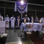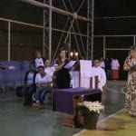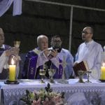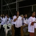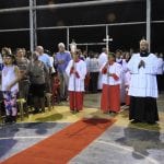 Caminhando para o final da celebração, as comunidades se apresentaram aos padres, através da entrada das imagens de seus padroeiros, trazidas por paroquianos. E na entrada de Nossa Senhora das Estradas apresentaram um poema elaborado especialmente para a ocasião: