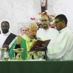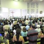 Fechando as transferências de padres em algumas paróquias da Arquidiocese neste início de ano, na noite do último domingo foi a vez do padre Renato Alves Rodrigues tomar posse. A partir de agora, ele assume a função de pároco na paróquia Sagrado Coração de Jesus, pertencente à Forania Santa Terezinha, no bairro Bairu. A celebração de posse ocorreu às 19h, presidida pelo arcebispo metropolitano, Dom Gil Antônio Moreira, e concelebrada por diversos padres do nosso clero. Também houve participação expressiva de diáconos e a presença de representantes da pastoral dos surdos, além de centenas de fiéis que foram prestigiar o novo pároco.