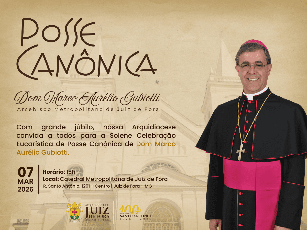 Seja bem-vindo(a) à página destinada à confirmação de presença para a Solene Celebração de Posse de Dom Marco Aurélio Gubiotti, que acontecerá no dia 07 de março de 2026, às 15h, em Juiz de Fora – MG, Igreja-Mãe de nossa Arquidiocese.