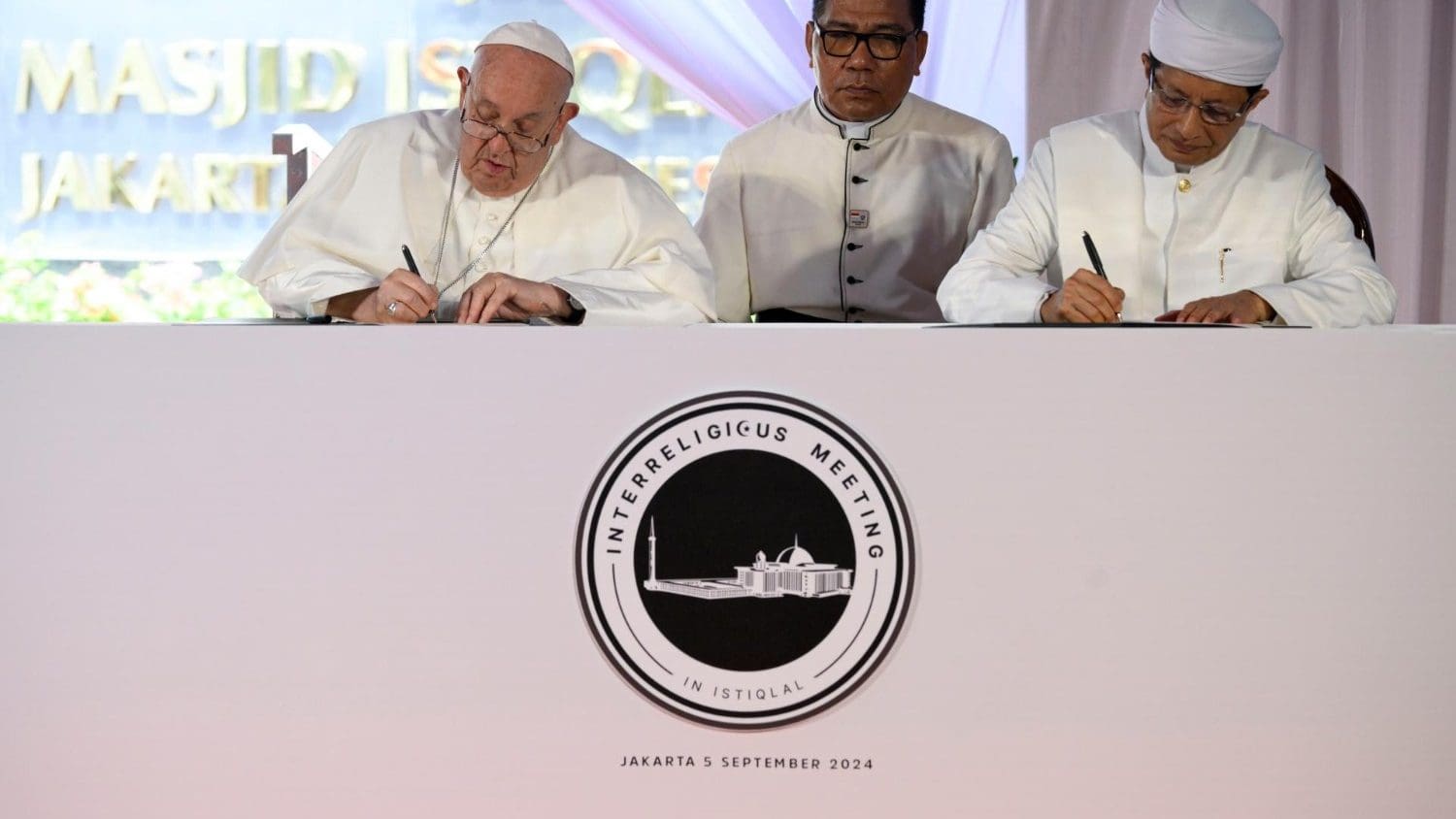 No encontro inter-religioso na Mesquita Istiqlal, em Jacarta, o Papa e o Grande Imã assinaram uma declaração conjunta. O documento se centraliza no compromisso de todos os crentes contra a violência e sobre o papel das religiões na promoção da paz e da harmonia.