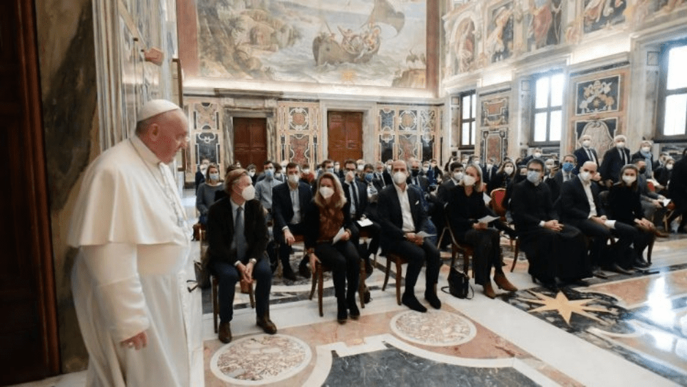 Francisco durante o encontro com os empresários franceses / Foto: Vatican Media