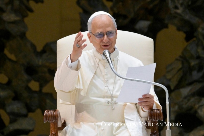 Em sua primeira saudação multilíngue, o Papa Leão XIV afirmou: “Buongiorno a tutti! Bom dia! Buenos días!”. Em seguida, o Pontífice saudou os milhares de fiéis em inglês, espanhol e italiano. Ele também os agradeceu pela paciência diante da decisão de mudar o local da Catequese, para “proteger todos do sol e do calor extremo”.