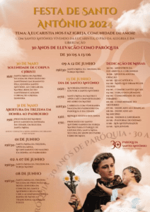 A celebração das três décadas de história está inserida nas festividades do padroeiro paroquial, Santo Antônio, cuja trezena foi iniciada em 31 de maio, e também foi recordada na Solenidade de Corpus Christi, no último dia 30. Até 12 de junho, cada Missa será dedicada a um movimento, pastoral ou serviço da paróquia. “Neste ano de 2024 nós queremos fazer memória desta data, marcando o compromisso cristão daquela comunidade com a então elevação paroquial”, aponta o atual Administrador Paroquial, Padre Alex Francisco da Silva.