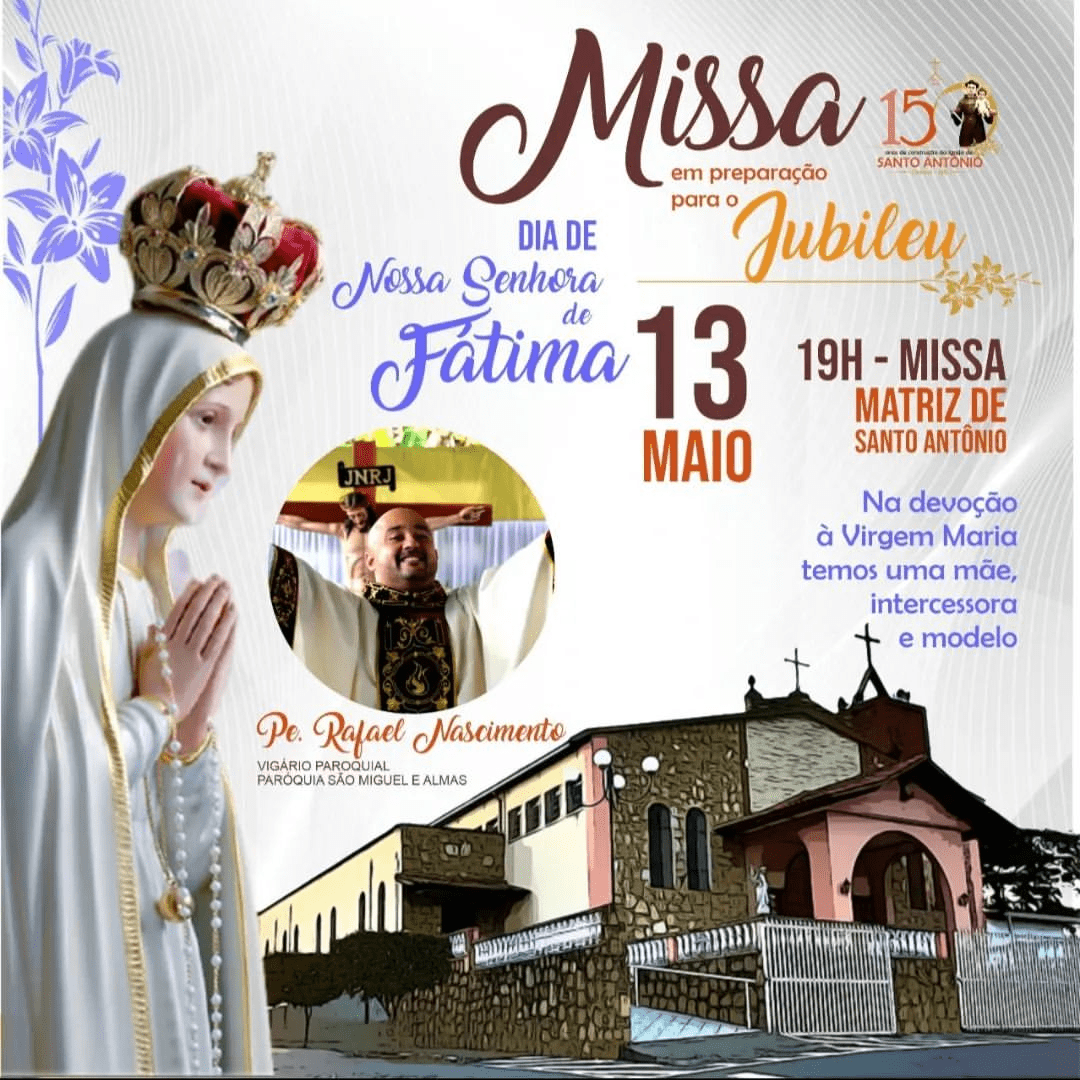 Para celebrar o jubileu foi realizada uma novena de Missas, sempre no dia 13, a cada mês com um padre diferente que tivesse algum tipo de relação com a paróquia. Nesta sexta-feira (13), se encerra a novena. No dia que a Igreja faz memória de Nossa Senhora de Fátima, a Missa será às 19h, na Matriz, presidida pelo Vigário Paroquial da paróquia São Miguel e Almas, Pe. Rafael Nascimento.