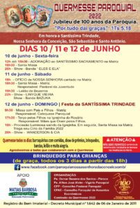 Entre os dias 10 e 12 de junho, a Paróquia Nossa Senhora da Conceição de Matias Barbosa (MG) promove sua tradicional quermesse em honra à Santíssima Trindade, à Nossa Senhora da Conceição, São Sebastião e Santo Antônio. Neste ano, além do retorno das atividades presenciais, é celebrado o jubileu de cem anos da paróquia, a serem completos em 1º de setembro.