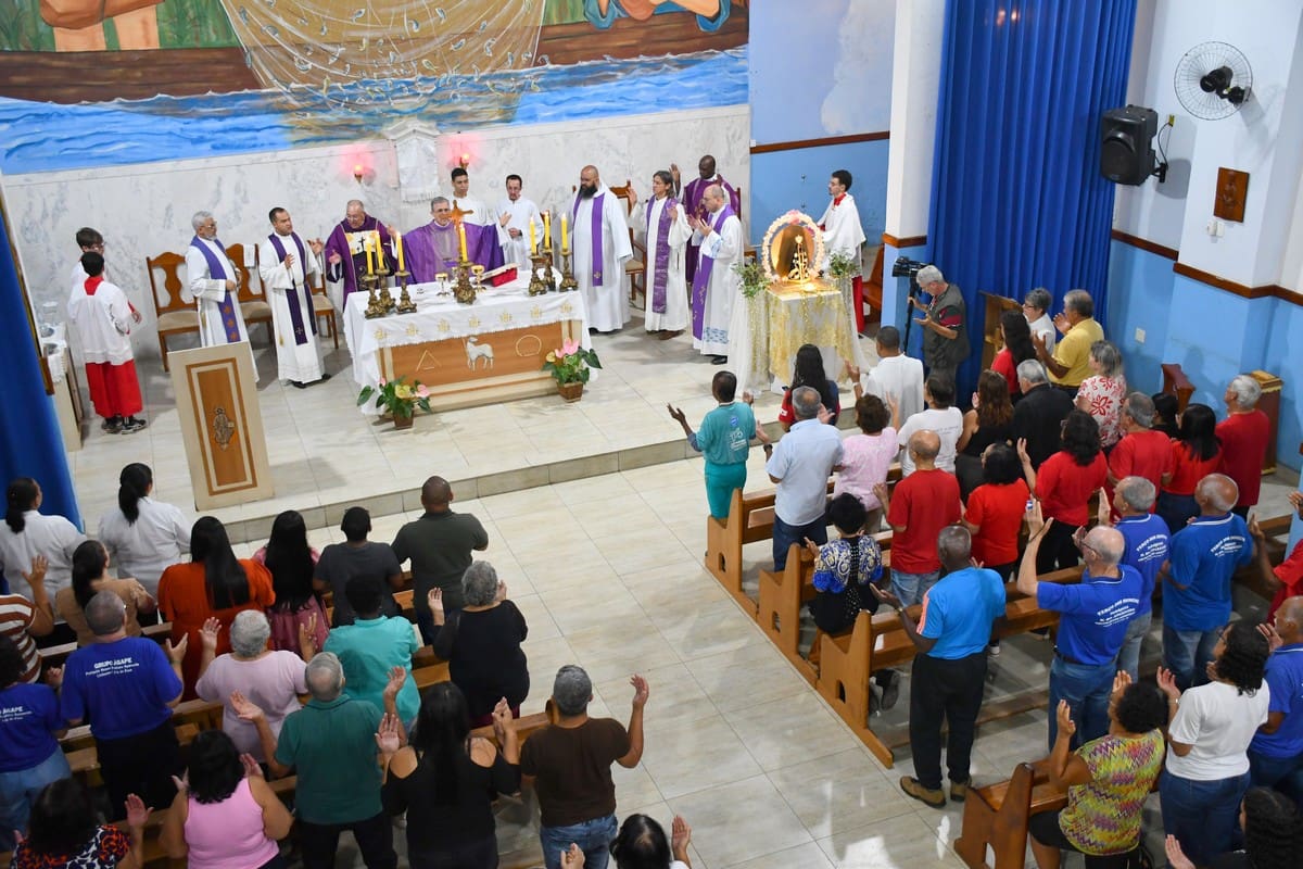 A Santa Missa, que contou com forte presença da comunidade paroquial, foi concelebrada pelos padres da Comunidade Magnificat, Willians Ferreira Silva, CEM, administrador Paroquial, Jorge Lopes dos Santos, CEM, Vigário Paroquial, Silas José Ribeiro, CEM, responsável pela comunidade, além dos Padres Liomar Rezende e Luis Antônio Baldi Fávero.