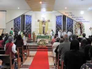 Durante a Eucaristia, Padre Camilo destacou a importância da unidade da comunidade paroquial e do padre para realizar sua missão: levar as pessoas para Cristo. “O sacerdote é o outro Cristo. Ele deve, juntamente com a comunidade, construir um ambiente acolhedor para as pessoas que vem pedir repouso, conselho, alento nos braços de Deus. Então, o padre é aquele que, com a sua comunidade, acolhe, edifica e alimenta espiritualmente a pessoa”.