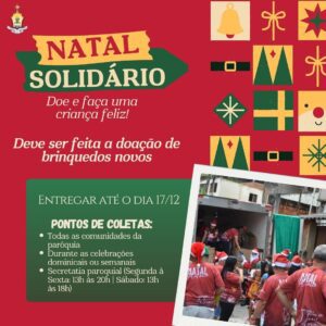 A Paróquia Nossa Senhora de Lourdes, do Bairro Francisco Bernardino, em Juiz de Fora, encerra, no próximo fim de semana, a campanha “Natal Solidário”. A iniciativa está arrecadando brinquedos novos, que serão dados de presente para crianças carentes do território paroquial.