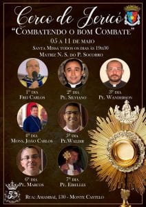 A Paróquia Nossa Senhora do Perpétuo Socorro, localizada no Bairro Monte Castelo em Juiz de Fora, realiza o Cerco de Jericó. Com o tema “Combatendo o bom combate”, os encontros acontecerão de 5 e 11 de maio, com a Santa Missa todos os dias às 19h30.