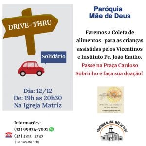 O convite é que este “abraço” seja também transmitido através do gesto solidário da doação de alimentos não-perecíveis a quem mais necessita. De 19h às 20h30, a paróquia recolherá os donativos, no formato drive-thru, na Praça Cardoso Sobrinho, onde fica localizada a Matriz. A coleta será em prol das famílias assistidas pelos vicentinos e pelo Instituto Padre João Emílio.