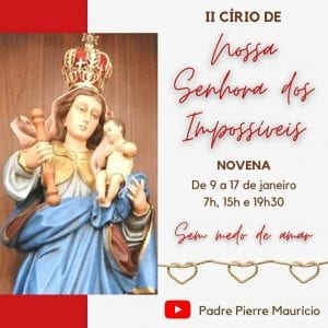 Desta vez a novena será diferente, devido à pandemia da Covid-19. Ela acontecerá em três horários, às 7h, às 15h e 19h30. Sempre com transmissão pelo canal do YouTube do padre Pierre Mauricio, pároco local.