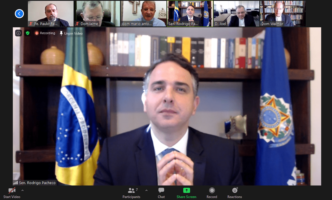 Como parte de suas atribuições estatutárias, a presidência da Conferência Nacional dos Bispos do Brasil (CNBB) se reuniu, virtualmente, na manhã desta terça-feira, 4 de maio, com o novo presidente do Senado Federal, o senador Rodrigo Pacheco, do Democratas-MG.