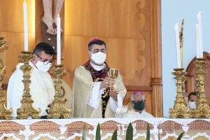 A missa foi presidida por dom Edson Oriolo e concelebrada pelo bispo emérito da Diocese de Juazeiro (BA), dom José Geraldo Cruz, AA, religioso da Congregação dos Agostinianos da Assunção. Dom José Geraldo reside no Distrito de Bom Jesus da Cachoeira, em Laranjal (MG), um dos municípios da área episcopal da Diocese de Leopoldina.