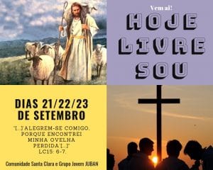 O grupo Jovens Unidos Buscando Algo Novo (JUBAN), pertencente à Comunidade Santa Clara do Bairro Santa Paula, realizará, mais uma vez, o seu retiro “Hoje Livre Sou”. O encontro com foco nas pregações querigmáticas (primeiro anúncio de Jesus) será nos dias 21, 22 e 23 deste mês e é voltado para adolescentes e jovens entre 14 e 24 anos.