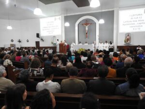 O sacerdote ainda explicou que que cada ovelha sabe diferenciar a voz do seu pastor, algo muito necessário, principalmente no contexto atual da sociedade. “Jesus disse ‘as minhas ovelhas ouvem a minha voz’. Hoje nós vemos aí nas mídias tanta gente convidando chamando, prometendo milagres, prometendo riqueza, prosperidade, e nós às vezes nos confundimos e deixamos de seguir o Cristo Bom Pastor para seguir esses mercenários, às vezes seguimos até os lobos, que querem nos devorar; por isso é preciso escutar a Palavra, prestar atenção na Palavra que sai da boca do nosso pároco, que é o nosso Pastor. Para que possamos seguir a Cristo e chegar com Ele ao patamar da verdadeira alegria”.
