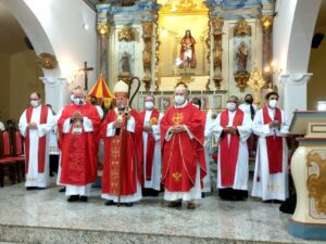 Padre Márcio, por sua vez, revelou o sentimento ao assumir a nova missão. “Para mim é uma alegria, uma satisfação muito grande assumir esse compromisso. Quero aqui, com a graça de Deus, procurar realizar uma missão bonita, sendo um pastor zeloso, cuidando e realizando aquilo que é a vontade de Deus nessa pequena porção do povo de Deus. Que o Bom Jesus seja meu guia, meu amparo, que Ele seja a minha luz e que eu possa trilhar pelos caminhos do evangelho, buscando com sabedoria e discernimento realizar essa missão que a Igreja nesse momento me confia.”