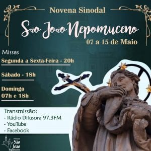 No próximo dia 16 de maio, a Igreja Católica celebra São João Nepomuceno, canonizado em 1729 e conhecido como o mártir da confissão. Na paróquia que leva o nome do santo, localizada na cidade homônima, as comemorações terão início nesta quinta-feira (7), com a Novena Sinodal do Padroeiro.