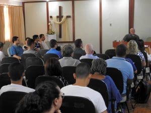 A programação encerrou-se com a conferência “‘Fazei de nós uma perfeita oferenda’: Eucaristia, sacrifício e salvação” com o Professor Eduardo Faria. “Podemos nos unir ao sacrifício de Cristo abandonando o egoísmo, abrindo mão do conforto e nos desgastando em favor dos outros. Alimentar quem tem fome, cobrir quem tem frio, ensinar a quem precisa de instrução na fé: isso é viver a Eucaristia no dia a dia”, observou.