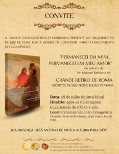 Durante os oito dias estão previstos momentos de oração, Santa Missa, adoração e atividades culturais. No primeiro dia, destacamos o lançamento do livro “Permanecei em mim: Permanecei em meu amor”, de autoria de Pe. Manuel Barbiero, sss, com escritos de São Pedro Julião Eymard, que ocorrerá após as celebrações das 7h30 e das 15h.