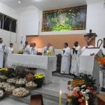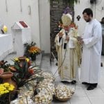 Antes do encerramento da celebração Dom Gil abençoou os pães e reforçou o convite para a festa junina, que já estava acontecendo nas dependências do seminário.