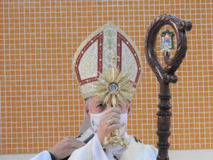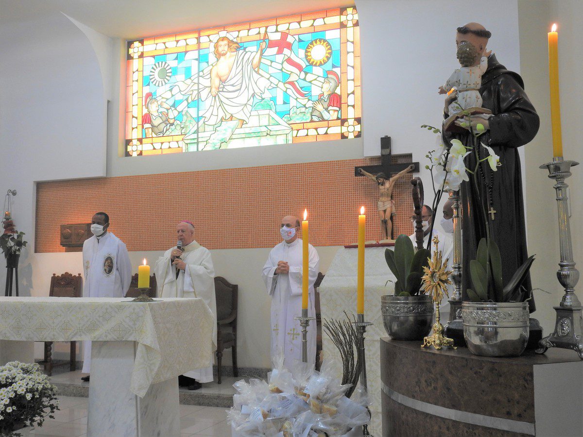 Ao final da Missa Dom Gil abençoou os pães, deu a benção final com a relíquia de Santo Antônio e convidou a todos para o almoço no formato drive-thru.