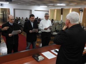 O pastor agradeceu o trabalho feito por Mons. Roberto e pelo Padre Gleydson Pimenta de Faria como formador da Comunidade de Filosofia. Este passará os próximos anos em Roma, onde fará Mestrado em Teologia com ênfase em Catequética. Em seguida, foram lidas as provisões pelo chanceler do Arcebispado, Padre Eder Luiz Pereira, procedidas pela leitura, por Mons. Luiz Carlos, Padre Camilo e Padre Dondici, da profissão de fé e do juramento de fidelidade.