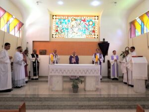 “O nosso Seminário, com quase 100 anos, tem muito a oferecer à Igreja. A gente fica pensando quantos padres já foram formados aqui que agora já estão na eternidade. Muitos foram professores, outros foram párocos… tantos que a Igreja formou nesses 98 anos. O que significa isso? Uma grande contribuição para a evangelização do povo, para a educação da caridade no coração das pessoas, na formação de uma sociedade fraterna e temente a Deus”, comemorou Dom Gil, que ainda recordou o grande serviço que o Seminário Santo Antônio presta também à Igreja do Brasil. “Nós temos muitos alunos de outras dioceses, recebemos congregações religiosas. Portanto, o Seminário Santo Antônio presta um serviço não só para a Igreja local, mas para todo o Brasil.”