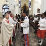 Dezenas de soldados do Exército, devidamente fardados, e alunos do Colégio Militar, trajando o uniforme de gala, receberam o sacramento de confirmação do Batismo, acompanhados de seus respectivos padrinhos e/ou madrinhas.